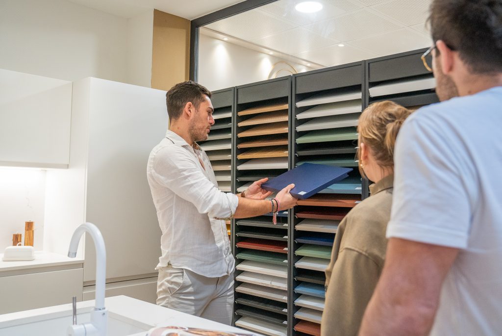 Pour ce faire, nous nous baserons sur vos envies et les dimensions de votre pièce pour concevoir une première ébauche de vos futurs agencements. Par la suite, il nous sera alors possible d’entrer dans la phase de personnalisation où vous pourrez transformer votre cuisine de A à Z grâce à notre large gamme de finitions.